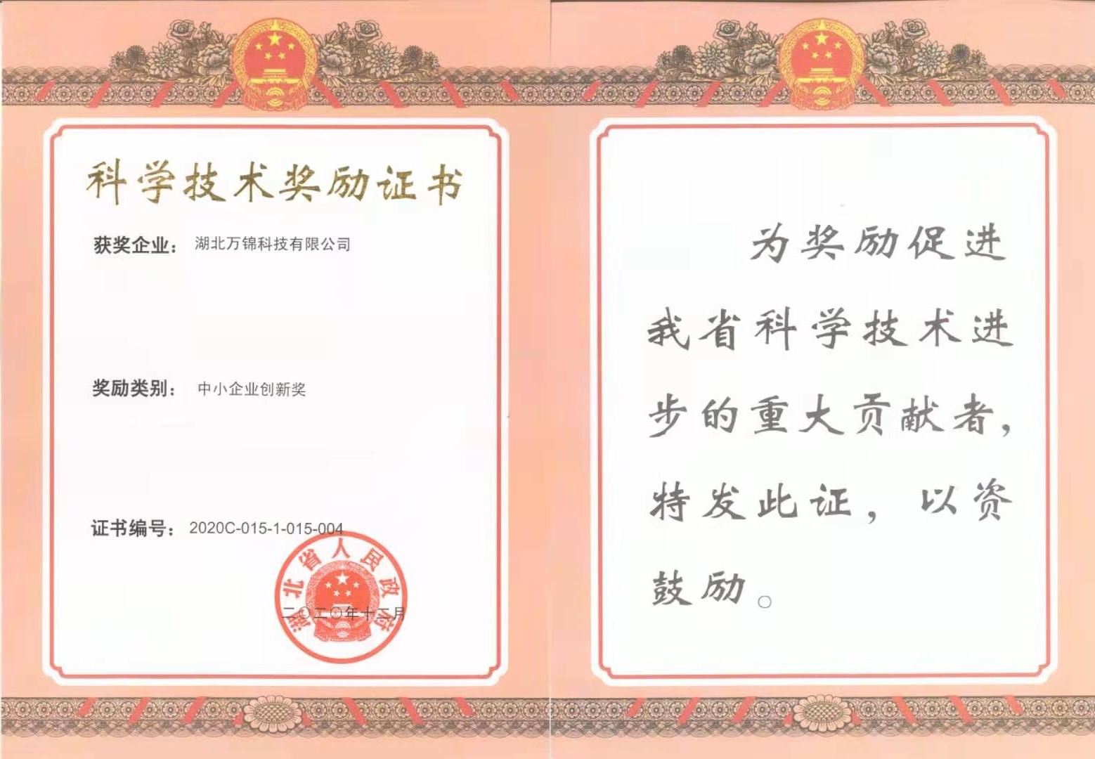 公司榮獲2020年湖北省科技型中小企業(yè)創(chuàng)新獎(jiǎng)