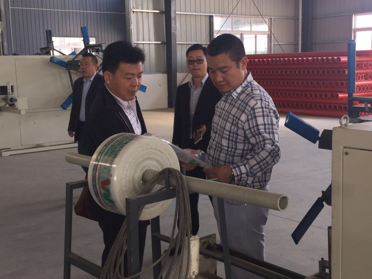 2017年4月29日,越南湖北商會(huì)宋會(huì)長(zhǎng)一行4個(gè)在董事長(zhǎng)夏祥義的陪同下視察了萬(wàn)錦科技,宋會(huì)長(zhǎng)等人在夏總陪同下參觀了公司所有車間,夏總向宋會(huì)長(zhǎng)和商會(huì)領(lǐng)導(dǎo)們?cè)敿?xì)介紹了公司的各類產(chǎn)品。