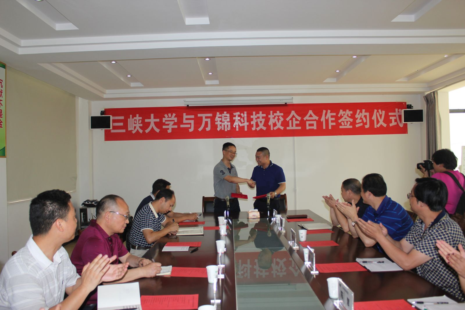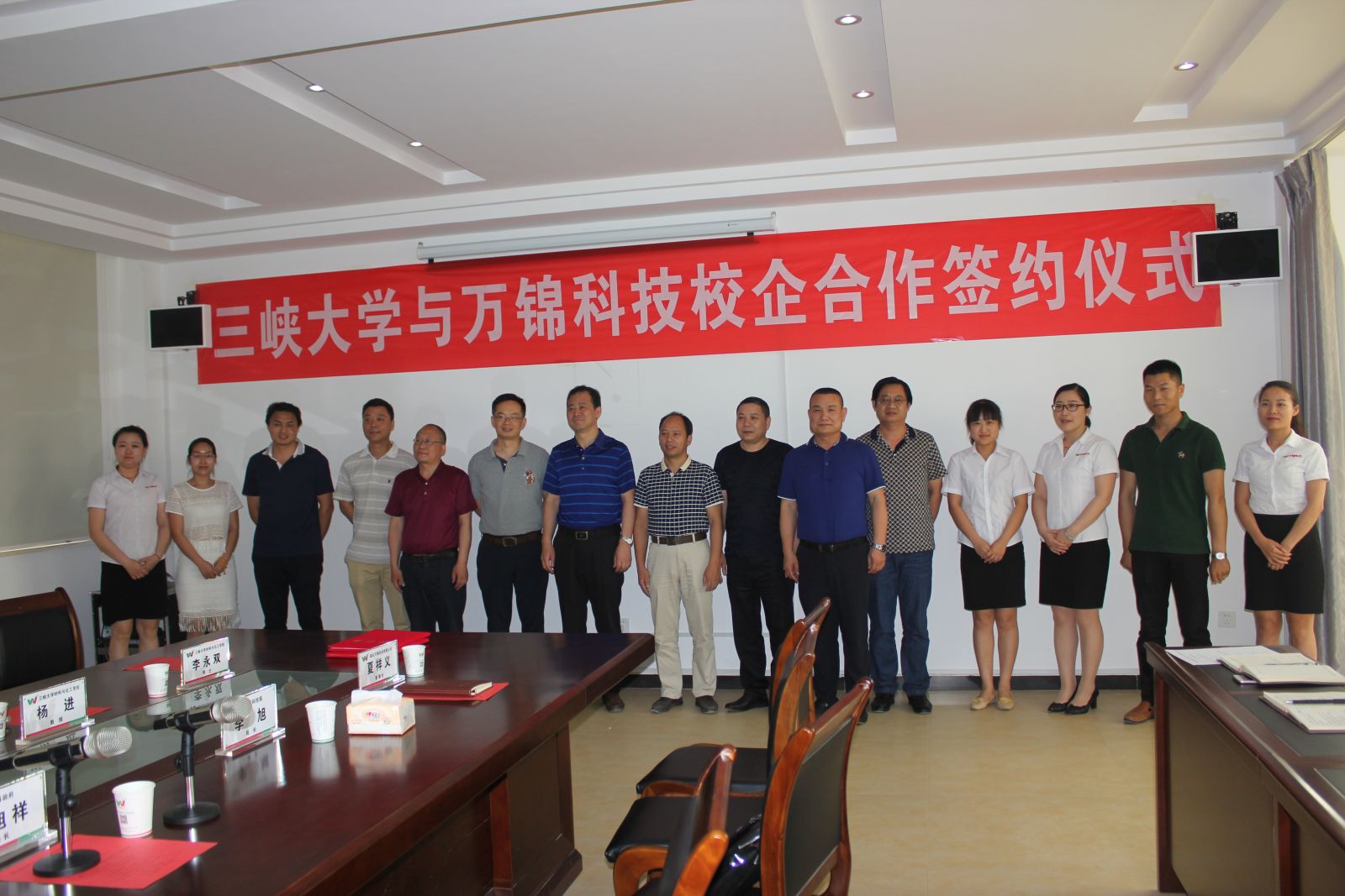 2017年6月2日,陽光明媚、雀喜臨門,在這個(gè)美好的日子里,湖北萬錦科技有限公司非常榮幸的邀請到三峽大學(xué)材料與化工學(xué)院的專家教授團(tuán)來到萬錦科技視察指導(dǎo)工作、把脈問診企業(yè),并在湖北萬錦科技三樓會(huì)議室隆重的舉行了校企合作簽約儀式。參加此次簽約儀式的有三峽大學(xué)材料與化工學(xué)院副院長楊學(xué)林博士、李德江教授、楊進(jìn)教授、陳衛(wèi)豐博士、李永雙博士、沙洋縣副縣長李旭祥同志、沙洋科技局李旭局長、張延主席、陳慧科長、萬錦科技董事長夏祥義、生產(chǎn)總監(jiān)張艷平、營銷總監(jiān)高陽新。