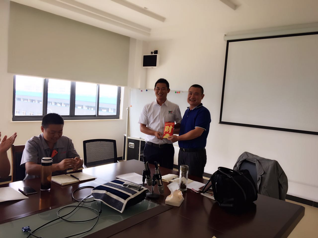 公司總經(jīng)理夏祥義祝賀獲得“銷售能手”的優(yōu)秀員工,以及總結(jié)以往工作,并對(duì)今后工作提出期望。隨之由銷售總監(jiān)吳總公布“銷售能手”獲獎(jiǎng)名單,他們分別是:張康、朱定超、夏祥輝、張寒成。在對(duì)優(yōu)秀員工進(jìn)行表彰后,由總經(jīng)理夏總親自為各位“銷售能手”頒發(fā)獎(jiǎng)金,一份沉甸的獎(jiǎng)金、一張自信的笑臉,伴隨相機(jī)快門按下的那一瞬間永久定格。所有員工為其鼓掌祝賀,并高喊企業(yè)精神“團(tuán)結(jié)、高效、奉獻(xiàn)”,最后夏總再次對(duì)優(yōu)秀員工表示感謝,并號(hào)召其他員工努力超越,脫穎而出。