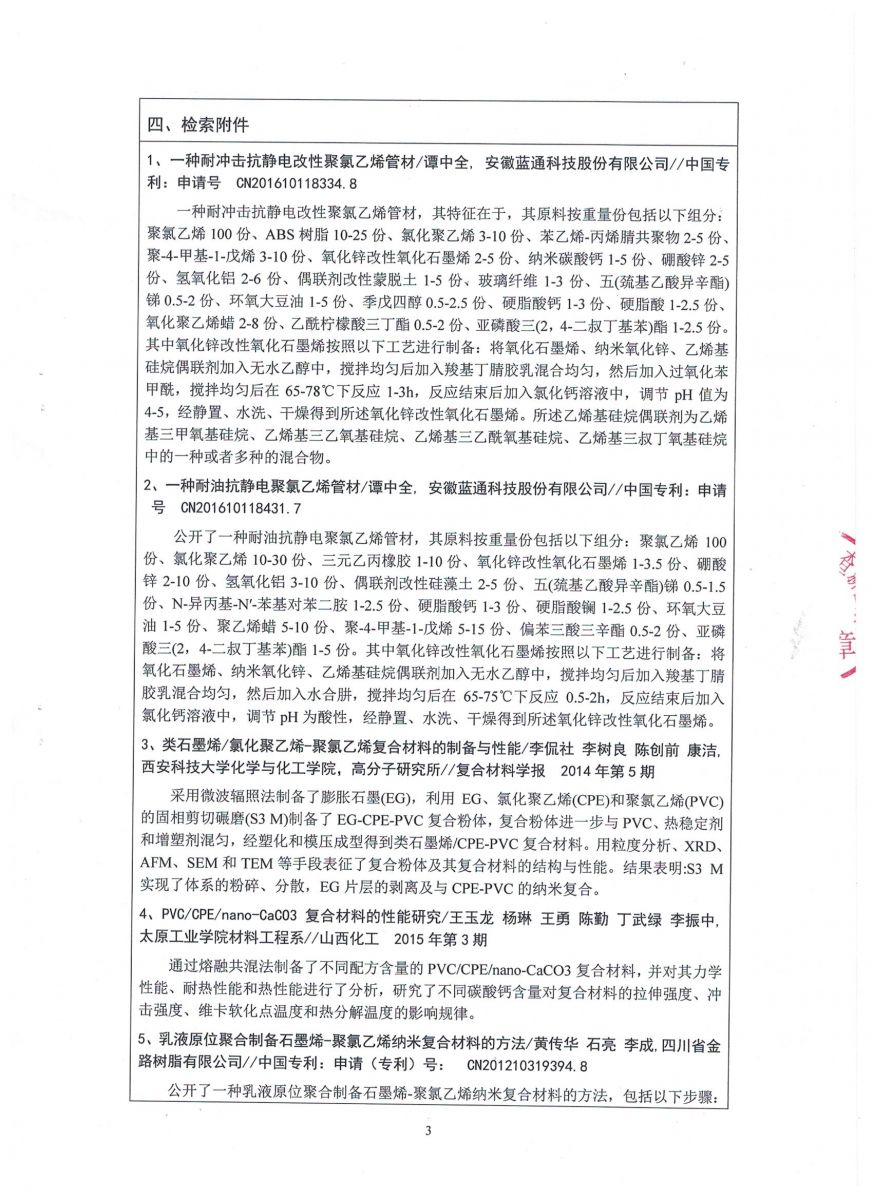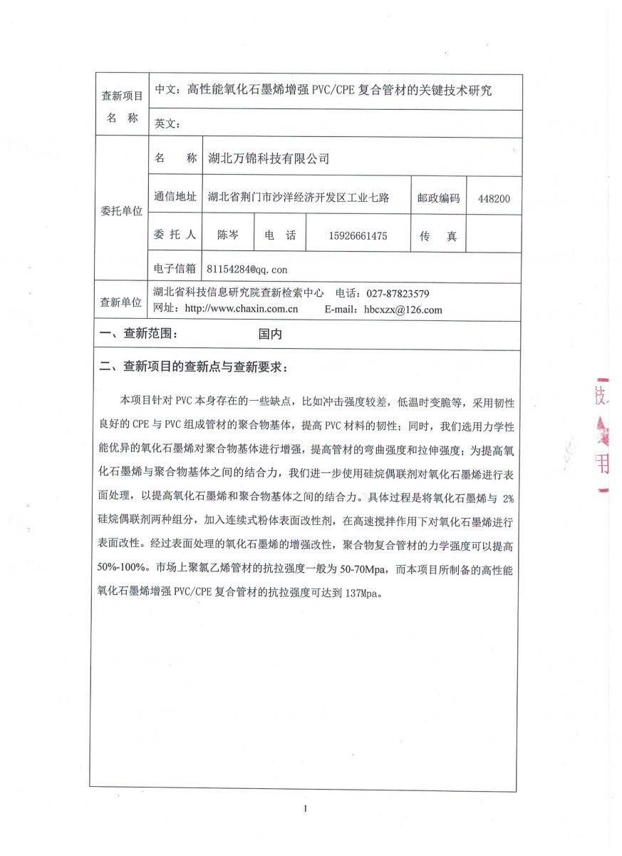 高性能氧化石墨烯增強PVC/CPE復合管材的關鍵技術研究查新報告!