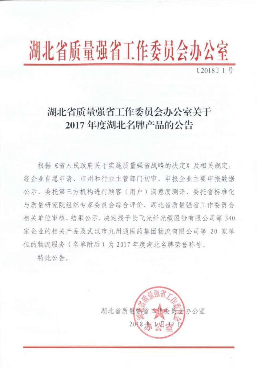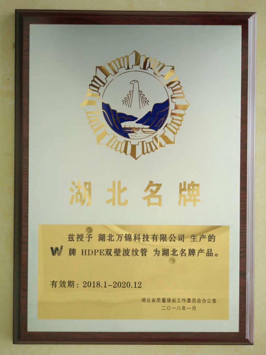 恭喜我司W(wǎng)牌HDPE雙壁波紋管榮獲“湖北名牌”產(chǎn)品!