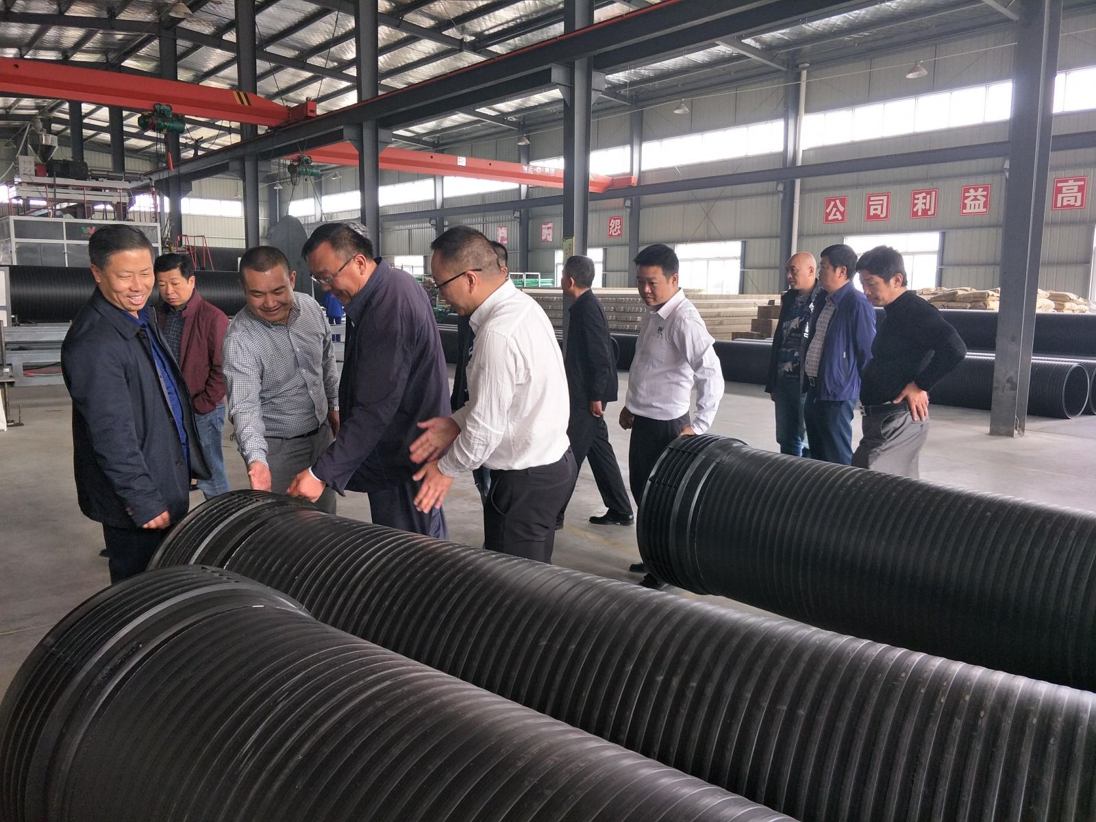 2018年10月18日,咸寧市住房和城鄉(xiāng)建設(shè)委員會(huì)相關(guān)領(lǐng)導(dǎo)一行14人到我司進(jìn)行考察交流,公司董事長(zhǎng)夏祥義率公司相關(guān)部門負(fù)責(zé)人陪同咸寧市住建委相關(guān)領(lǐng)導(dǎo)一行參觀了我司的波紋管生產(chǎn)車間、纏繞管生產(chǎn)車間、檢測(cè)中心等,夏祥義對(duì)咸寧市住建委考察組蒞臨公司考察指導(dǎo)工作表示熱烈歡迎,并就公司的基本情況、生產(chǎn)管理理念以及發(fā)展規(guī)劃向考察組做了詳細(xì)介紹。夏祥義指出,公司堅(jiān)持以“誠(chéng)信惠譽(yù)、創(chuàng)新進(jìn)取、綠色環(huán)保、安全為首、質(zhì)量為本、品質(zhì)為上”的經(jīng)營(yíng)管理理念,近年來取得了良好的經(jīng)營(yíng)業(yè)績(jī),并從三個(gè)方面做了經(jīng)驗(yàn)介紹: